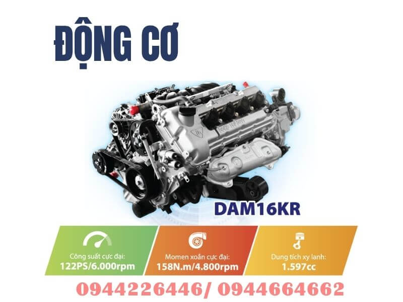 Động cơ xăng 1.6L DAM16KR công nghệ Nhật Bản, đạt 122 Ps và 158 Nm, mạnh mẽ hơn hẳn các đối thủ 1.2L–1.5L. Hộp số 5 cấp giúp vận hành êm ái, tiết kiệm nhiên liệu và đảm bảo khả năng leo dốc, tải nặng tốt.