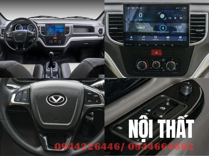 Cabin 2 chỗ rộng rãi, ghế da êm ái và ghế lái chỉnh 4 hướng. Xe trang bị trợ lực lái điện EPS, điều hòa 2 chiều, màn hình Android 9 inch tích hợp camera lùi và kính chỉnh điện auto 1 chạm – mang lại trải nghiệm tiện nghi vượt trội so với các đối thủ cùng phân khúc.