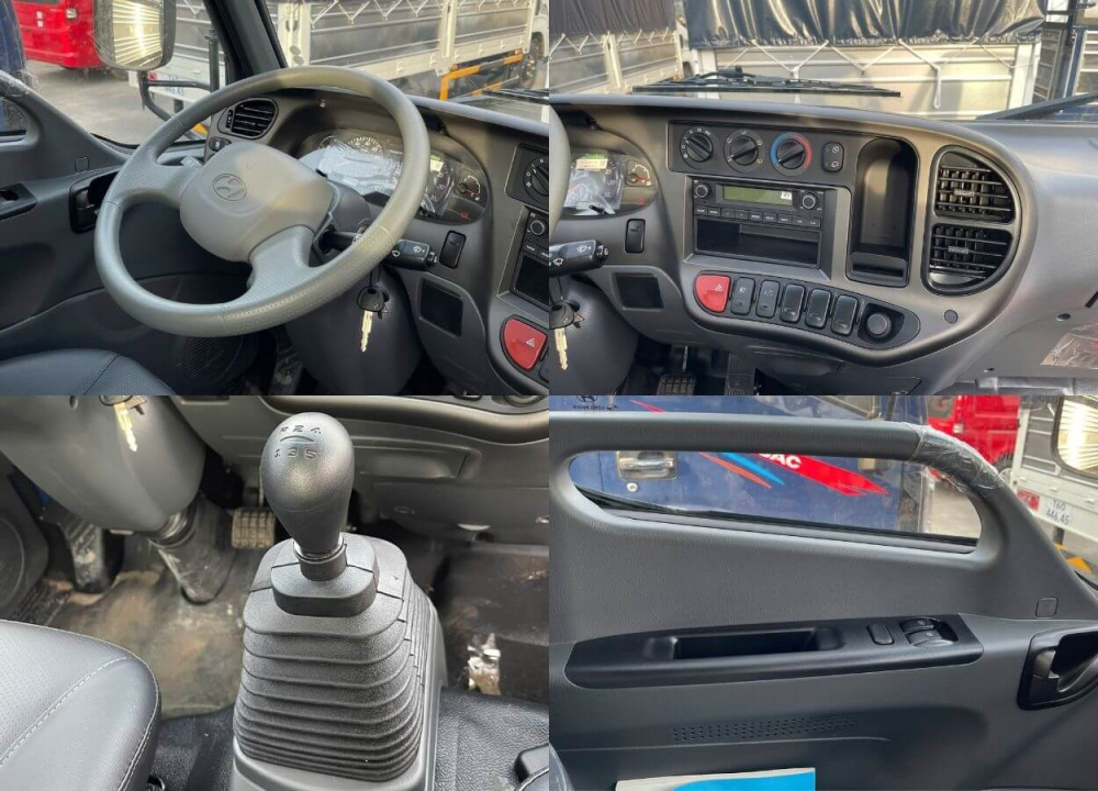 Hệ thống giải trí đi kèm bao gồm Radio/FM/USB/AUX với dàn âm thanh chất lượng cao, giúp các bác tài thư giãn và cập nhật thông tin giao thông trong suốt chuyến đi. Mặt taplo được ốp vân gỗ sang trọng, các phím bấm điều khiển được bố trí khoa học, dễ thao tác ngay cả khi đang lái xe.