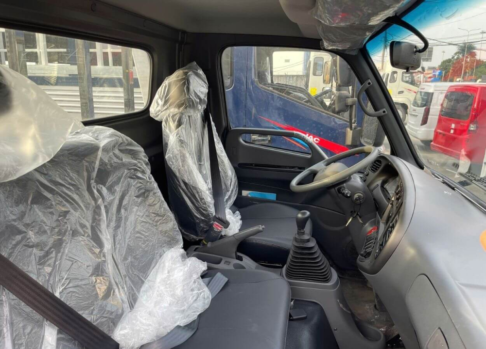 Toàn bộ 3 ghế ngồi đều được bọc nỉ cao cấp nhập khẩu từ Hàn Quốc, có độ đàn hồi cao, thoáng khí vào mùa hè và ấm áp vào mùa đông. Riêng ghế lái có thể điều chỉnh trượt lên xuống và ngả lưng, kết hợp với vô lăng gật gù trợ lực dầu, giúp bác tài dễ dàng tìm được tư thế lái thoải mái nhất.